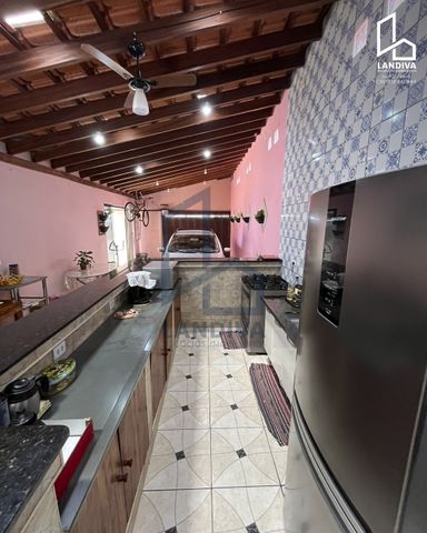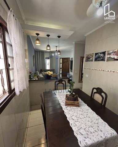 Casa à venda no Centro de Aguaí, com 190 m² de terreno, sendo 110 m² de área construída. O imóvel possui 2 quartos, 2 banheiros, sala com 2 ambientes, cozinha gourmet e garagem com vaga para 2 carros.