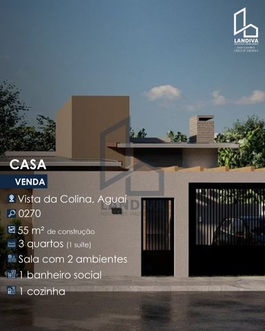 Casa à venda no bairro Jardim das Flores, em Aguaí, com 200 m² de terreno, sendo 67,64 m² de área construída. O imóvel possui 2 quartos (sendo 1 suíte), sala e cozinha integradas, 1 banheiro social e lavanderia.