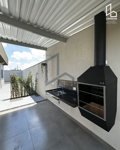 Casa à venda no bairro Jardim das Flores, em Aguaí, com 200 m² de terreno, sendo 93 m² de área construída. O imóvel possui 2 quartos, sendo 1 suíte, sala e cozinha integradas, 1 banheiro social, lavanderia a garagem coberta com vaga para 2 carros.
