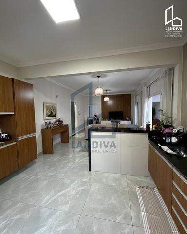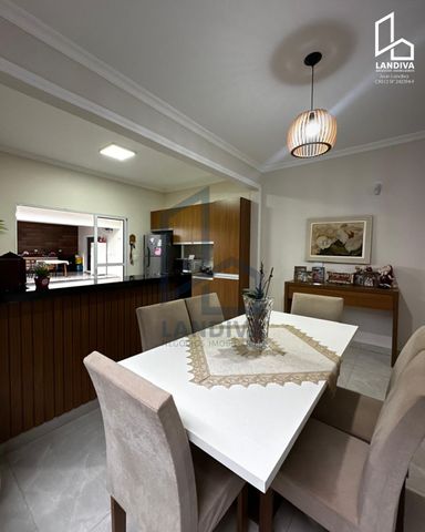 Casa no bairro Portal dos Lagos, em Aguaí, com 336 m² de terreno, sendo 190 m² de área construída. O imóvel possui 4 quartos (2 suítes), 1 sala, 1 banheiro social, 1 cozinha, área gourmet com churrasqueira e lavanderia. Móveis planejados na cozinha, área gourmet e sala.